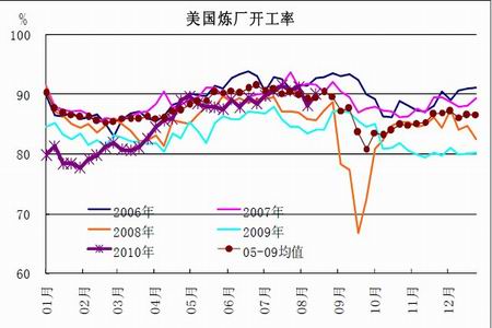 圖為美國煉廠開工走勢圖。(圖片來源:北京中期)