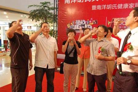 家具是否環(huán)保,所選用的材質(zhì)和油漆是關(guān)鍵。2010年8月21日在紅星美凱龍常州店舉行南洋胡氏實木家具十七周年慶典啟幕儀式,活動現(xiàn)場南洋胡氏邀請了6位常州的南洋胡氏實木家具“見證大使”,共同見證將該產(chǎn)品所使用的油漆喝下。 另外,當(dāng)天還舉辦了“17元家具秒殺”活動,現(xiàn)場氣氛十分火爆。
