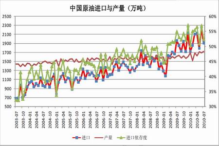 根據中國海關8 月份公布的數據顯示,中國7 月份的原油進口量1900 萬噸,比6 月份的2100 萬噸大幅減少,但同比仍大幅增加,而且我們可以看到,中國原油的進口量總體保持著增長的趨勢,除了中國的需求增長以外,中國戰略儲備的因素預計也是原油進口量逐步增加的主要原因之一,中國的進口依存度在逐步加大,且目前基本穩定在50%以上,預計后期中國的原油進口量仍很有可能再創新高,這個因素仍有可能成為國際投機資金的炒作題材。