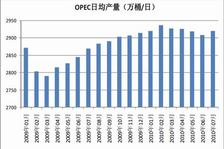 據石油輸出國組織(OPEC)的月度報告的數據顯示,7 月份OPEC 原油產量初值為2920 萬桶/日,比6 月份稍有增加,但近幾個月的產量總體保持比較平穩,近期石油輸出國組織(OPEC)的原油產量穩定在略高于每天2900 萬桶的水平,對原油價格沒有直接的沖擊,從2009 年開始,油價一度連續多個月震蕩上揚,在利潤驅使下,OPEC 亦連續增產,至今年2 月份產量達到頂峰,此后隨著原油價格趨于寬幅震蕩,OPEC 繼續增產的熱情也有所降溫,前期油價跌至近70 美元/桶時,OPEC 一度傳出將減產的言論,但隨著油價穩固在70 美元/桶上方,目前這些言論暫時消失,而8 月份隨著整個商品市場的回落,油價再次步入70~75 美元/桶這個強支撐區域內,我們認為油價的下跌空間已經很有限,OPEC 方面潛在的減產因素也是我們認為70 美元/桶是原油一個強勁支撐的重要理由之一。