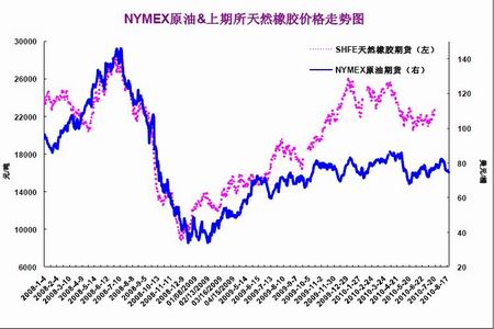 國際原油期貨對天然橡膠價格有著非常深刻的影響,進入2010年之后,原油與滬膠期貨的相關性有所降低,目前其相關系數(shù)在0.834左右。原油價格在8月初沖上80美元關口并一度突破83美元,但其后很快連續(xù)回落,在近三周的下跌之后,紐約原油價格已經回到了74美元下方,給塑料、天然橡膠等市場帶來較大的利空影響。從宏觀方面看,美國失業(yè)率的居高不下和其經濟面臨的增長乏力使得投資者對復蘇的步伐有所擔憂。投資者對全球經濟增長放緩的擔憂加劇提升了美元作為避險貨幣的魅力,美元指數(shù)在此情況下在80美元附近連續(xù)反彈,給商品市場帶來了下行的壓力,原油的連續(xù)回落拖累了下游化工品市場,未來一段時間,可持續(xù)關注外圍市場對滬膠的利空影響。
