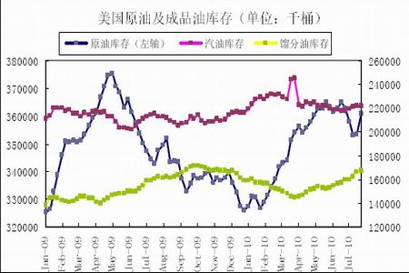 7月份,雖說美國汽油消費仍是傳統消費旺季,但汽油消費狀況并不如人意,推動原油上漲的動力可能更多的是夏季墨西哥灣的颶風影響。從近期美國油品庫存情況看,汽油和餾分油庫存并未出現明顯的下降,原油庫存雖然相比年內高點下滑不少,但最近又出現了強勁反彈。據EIA28日發布的周度報告顯示,7月23日當周美國商業原油庫存(戰略石油儲備SPR除外)較前一周大幅增加730萬桶,這一增幅創下近兩年來的最大值,雖然進口猛增是主要原因,但供應大于需求的壓力可見一斑。正是由于基本面上并未見有效改觀,原油在80美元整數關口連續受阻,陷入長時間(近3個月)的震蕩。