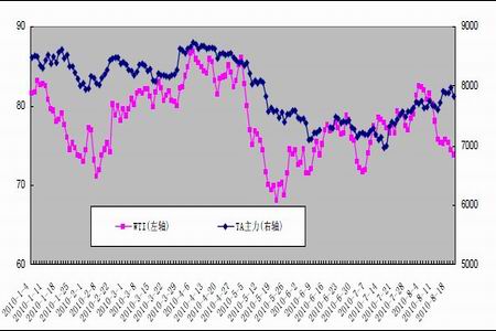 進入8 月以來,在颶風炒作和系列歐美經濟數據利好的強勁推動下,油價一舉上沖80美元/桶上方,并在美元走軟的支撐下走出三連陽。然而好景不長,在美元短期利空出盡、美聯儲的悲觀經濟預期、就業不振以及高庫存水平等因素的共同打壓下,油價迅速從80 美元上方高位跳水至75 美元/桶下方,并在兩周內回吐了之前一個多月的漲幅,重回70-80美元/桶寬幅震蕩區間,截止8 月20 日,紐約9 月期貨結算價報每桶73.82 美元,較7 月30 日的78.95 美元/桶收盤價下跌了5.13 美元/桶。鄭州PTA 作為原油的下游產物,其走勢無疑備受原油走勢影響,并逐步夯實近期階段性底部。