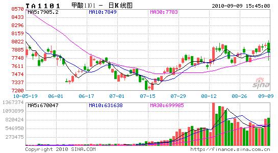 PTA上游原料價格保持堅挺;由于PTA裝置陸續(xù)停產(chǎn)檢修,整體供應呈現(xiàn)階段性偏緊局面,鄭交所PTA倉單明顯下降也緩和對期價的壓制。受到限電政策的影響,下游對原料采購需求有所減少,但市場對9-10月前后一部分新聚酯裝置投產(chǎn)后,PTA需求仍存在增長預期�?傮w上,在秋季紡織品服裝需求旺季,加上資金對PTA的持續(xù)介入,PTA有望維持震蕩上行走勢,但PTA高利潤也使得上行面臨生產(chǎn)商的套保拋壓。9月份,PTA將有望繼續(xù)測試8000關口壓力,若能突破將進一步上試8300一線壓力,預計將處于7600-8300區(qū)間寬幅震蕩的格局。
