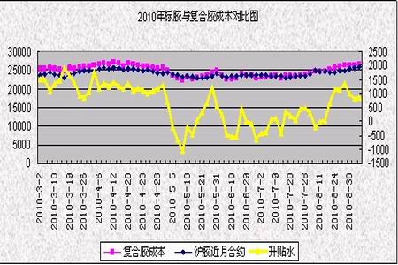 圖為2010年標膠與復合膠成本對比圖。(圖片來源:瑞達期貨)
