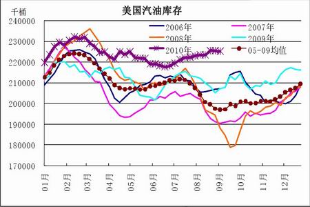 圖為美國汽油庫存走勢圖。(圖片來源:北京中期)