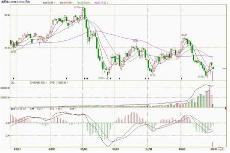 圖1 NYMEX10 月原油期貨日K 線價格走勢