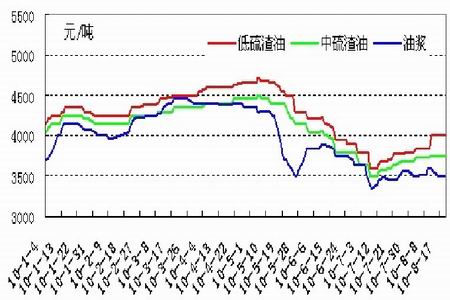 因原油價格上漲帶動山東區內柴油價格全面上漲50-100 元/噸,焦化利潤增長。受此影響,月初渣油需求激增,渣油資源緊張局面顯現。此后,柴油價格繼續上漲,資源供應量持續偏低,遠遠低于開工焦化裝置外采量。焦化裝置處于盈利及資源供應持續偏緊對渣油堅挺高位提供有利支撐。月末需求減緩,昌邑石化轉產常渣,天宏本月無復工計劃,藍星石化焦化裝置停工,所以整體表現供需兩淡,價格進退維谷。