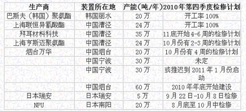 據(jù)消息人士上周五表示,隨著各地區(qū)裝置的集中檢修,市場現(xiàn)貨貨源有限,亞洲MDI生產(chǎn)商正試圖對10月報價進(jìn)行上調(diào)。