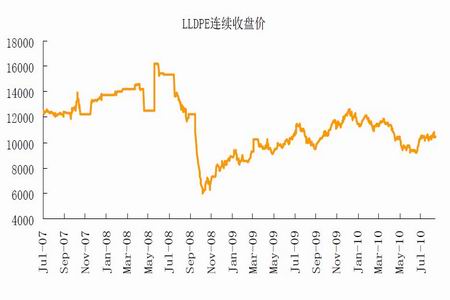 按照供求關(guān)系決定價(jià)格原理,2010 年P(guān)E 投產(chǎn)產(chǎn)能太過(guò)于集中,現(xiàn)貨供給十分充足。在國(guó)內(nèi)供給偏多情況下,總進(jìn)口量又沒(méi)有相對(duì)下降,價(jià)格上漲必然受到來(lái)自供給的沖擊。即使外圍環(huán)境和原料等其他因素不發(fā)生變化,LLDPE 價(jià)格重心也會(huì)下移。因此,在判定2010 年整體價(jià)格的同時(shí),以往歷史數(shù)據(jù)最重要的是給予我們變化趨勢(shì)而不是絕對(duì)價(jià)格。這在四季度判斷LLDPE 價(jià)格趨勢(shì)上仍然十分有效。