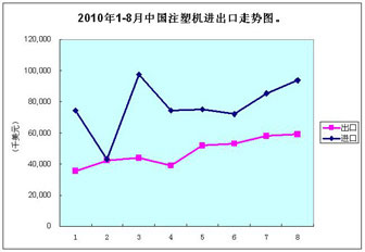 1-8月,中國注塑機累計出口1.16萬臺,金額3.82億美元,同比分別增長80.7%和81%,同期累計進口6665臺,金額6.17億美元,同比分別增長119.1%和90.4%。