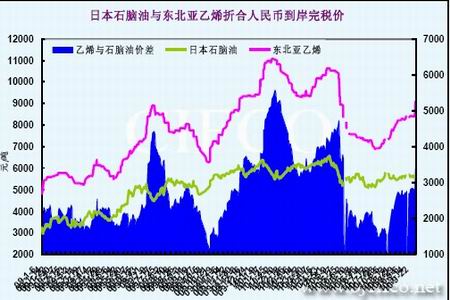圖1-4:日本石腦油與東北亞乙烯價格走勢對比圖