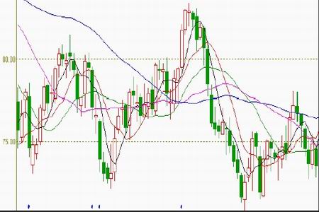 圖2-1:NYMEX原油10月期貨合約日K線走勢圖 單位:美元/桶