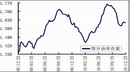圖為美國餾分油庫存量走勢(shì)圖。(圖片來源:Wind 資訊、中信建投期貨)