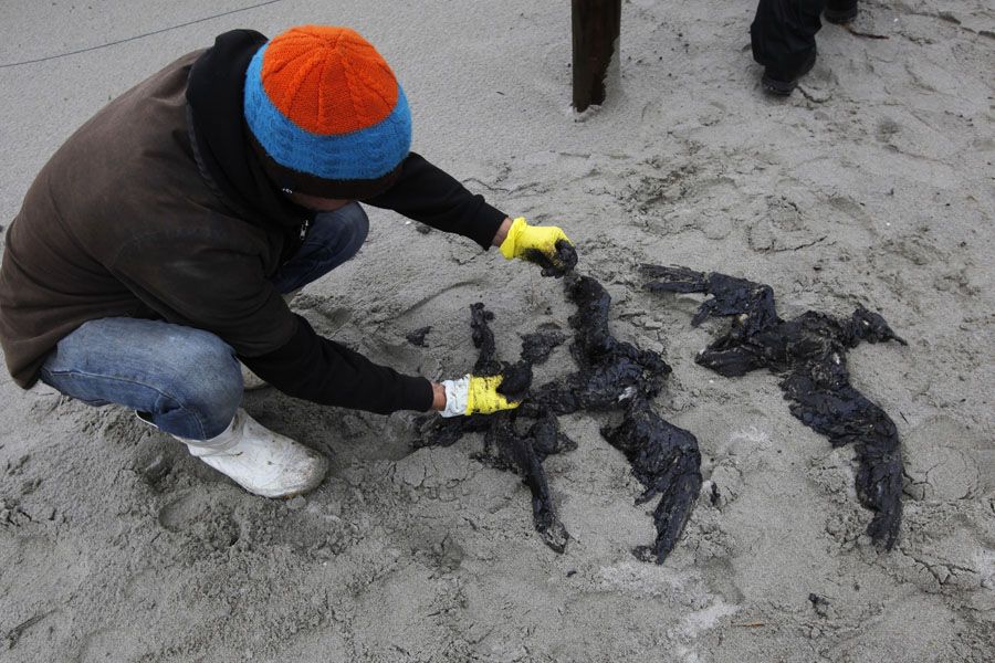 當?shù)囟嗝用裾f,在海灘上看到大量死去的海鳥和魚。一些人批評新西蘭政府應(yīng)對漏油不力。當?shù)鼐用褡园l(fā)組織清潔隊,戴上橡膠手套,把海灘上的油污鏟到塑料袋中。