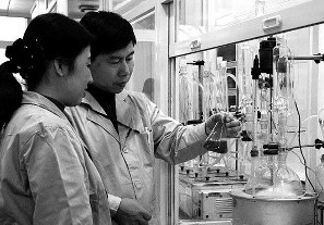 涂在“天宮一號”運載火箭外表的乳白色涂料,是天津燈塔涂料有限公司生產(chǎn)的。圖為該公司科研人員在研發(fā)航空航天專用涂料。