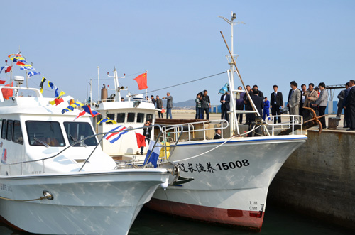 遼寧省漁業(yè)節(jié)能減排暨玻璃鋼漁船試點示范現(xiàn)場會,10月10日,在大連金石灘金貝廣場啟幕。作為中國首個玻璃鋼漁船試點示范企業(yè),大連獐子島漁業(yè)集團股份有限公司現(xiàn)場展示了籠釣船、采捕船和垂釣船等玻璃鋼船型,充分展示出大連漁業(yè)的國際化先進裝備水平。