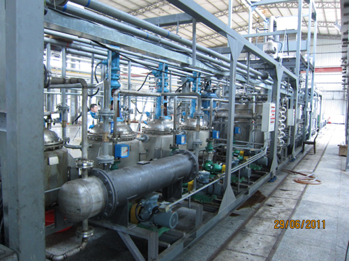 目前,該技術工藝已進行推廣應用,在天津建成投產了年產1萬噸生物柴油示范工程,用戶反映良好;在溫州已開工建設年產3萬噸生物柴油工程,預計2011年年底投產。由于該技術具有運行連續穩定,能耗可控,油品質量優,轉化率高,污染物可控與雜質回收利用、原料適應性強等優點,成為了理想的符合我國國情的生物柴油生產技術,對推動我國生物柴油產業的發展具有重要意義。