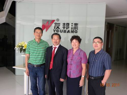 2011年10月18日,廣東省涂料行業協會會長何炳福、秘書長黃開、會長助理呂水列一行考察了佛山市順德區友邦涂料公司,友邦涂料公司總經理賴顯明、總工程師章盛陪同協會領導參觀了公司并進行了友好的交流。