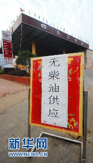 10月21日,江西九江一加油站入口處擺出無柴油供應的牌子。自10月9日成品油價格調(diào)降之后,江西多個地區(qū)柴油供應出現(xiàn)異動,一些私營加油站出現(xiàn)了無柴油供應的現(xiàn)象,中石化、中石油加油站也開始限量加油,市場再發(fā)“油荒”信號。新華社發(fā)(胡國林 攝)