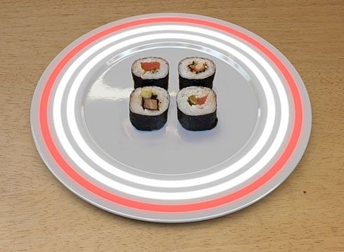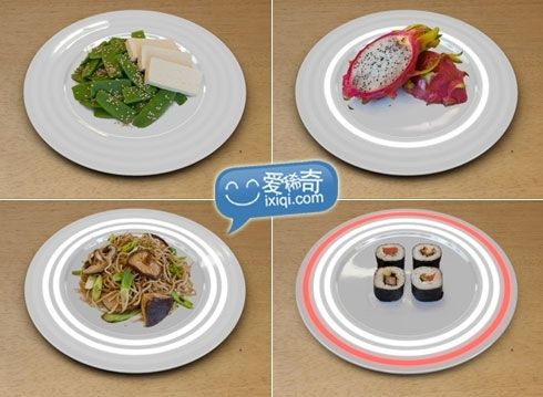 1、輻射檢測餐盤:來自Nils Ferber的設計,餐盤上嵌著三圈環狀OLED發光體,背面是輻射檢測儀。如果放入盤中的食物是安全的,這些餐盤和普通盤子不會有區別,而一旦食物已經被放射性元素沾染,那么光圈會被點亮,從最輕微的一根光圈,到超過預設量的三根光圈(第三根是紅色的)――當然了,我若是你,只要亮起一根,我就打死也不會再吃這些東西了~
