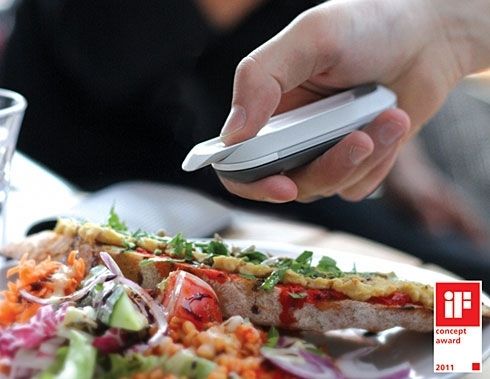 2、食物過敏原檢測儀(下圖):事實上,盡管福島發生了這么大事故,食物自帶放射性的案例還是挺少的。相較而言,你我普通人更應該防備的也許是過敏――很多食物都有可能引起過敏反應,讓人渾身疙瘩,甚至致人于死命。如何最快速判斷食物是否含有過敏原?設計師Erik Borg和飛利浦公司合作,打算開發一款很便攜的食物過敏原檢測儀,能通過某種方式對食物進行檢測,然后在屏幕上顯示檢測結果。