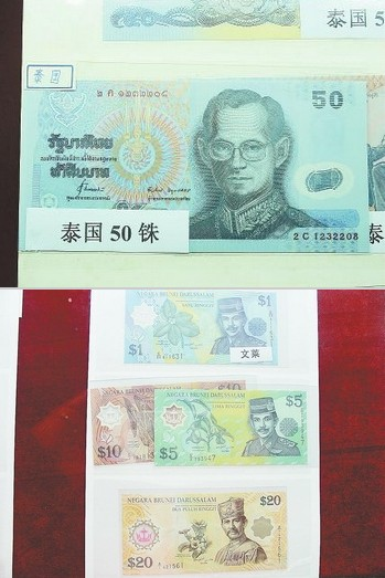 在“世界特色貨幣收藏暨迎春錢幣展”上,記者看到了越南的1萬盾、5萬盾,文萊的1元、5元、10元、20元和泰國的50銖等面值的塑料鈔票。隔著玻璃柜,這些鈔票看不出是塑料制作的,看起來跟紙質(zhì)鈔票沒兩樣,色澤鮮艷、紋理清晰。不同的是這些塑料鈔票的一角是透明的,印有鈔票金額或防偽標(biāo)識。