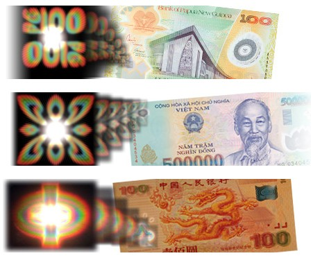 此外,澳大利亞研究人員在塑料鈔票上采用了OVD光變圖像技術(shù),能在不同照明度和視角產(chǎn)生不同的色彩和圖樣。羅馬尼亞在塑料鈔票上應(yīng)用了同色異譜油墨印刷技術(shù);此外,越南、泰國、巴西等國還采用了浮雕壓印技術(shù),即在塑料基片的透明視窗處采取無墨壓印浮雕圖案。