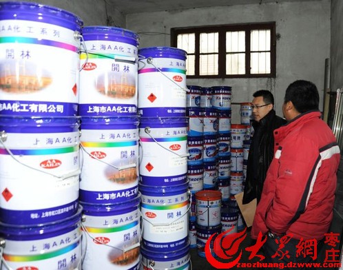 滕州警方端掉制售假油漆窩點 繳獲近千桶