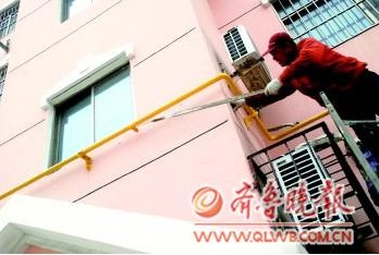 11月28日,記者在東營市錦華三區看到,物業工作人員正在給樓上的天然氣管道上漆,在涂上一層防銹漆的基礎上又涂上一層黃色的保護漆。據該工作人員介紹,該小區很多天然氣管道已經生銹,爭取在大雪來臨之前上完漆,主要是保證寒冬時管道不被凍裂。