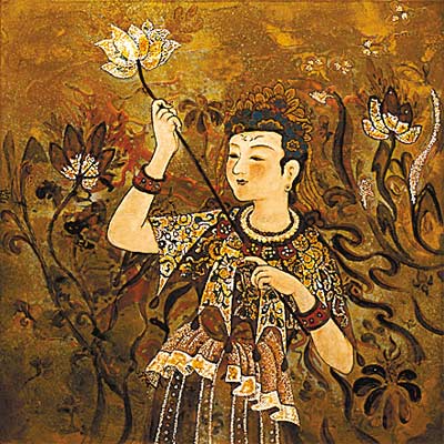 嶺南漆畫家作品上拍,圖為陳志強(qiáng)的《仕女圖》