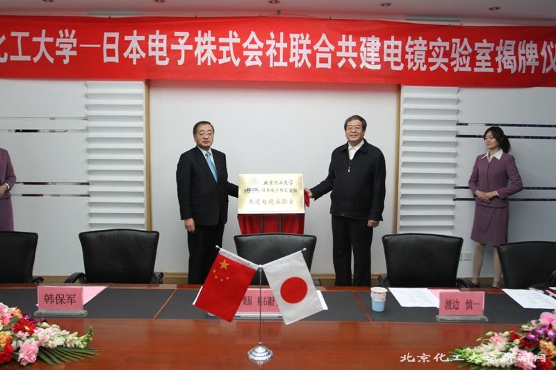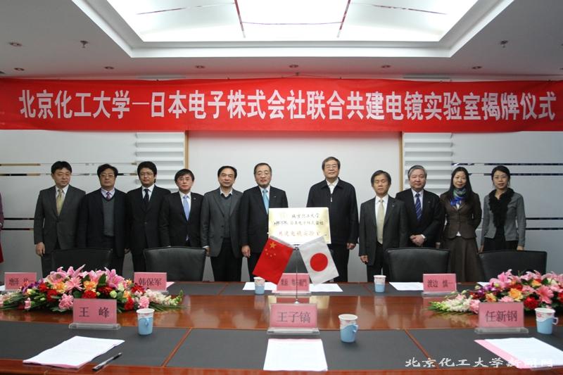 12月23日上午,北京化工大學(xué)與日本電子株式會社舉行了“聯(lián)合共建電鏡實驗室”揭牌儀式。王子鎬校長和栗原権右衛(wèi)門社長分別代表雙方為共建實驗室揭牌。儀式由北化黨委副書記兼副校長任新鋼主持。日方一行五人以及北化材料學(xué)院黨委書記王峰等相關(guān)人員參加了儀式。