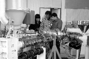 青島鑫泉塑料機械有限公司充分發揮企業人才和技術優勢,與國內多所大專院校合作,全面挺進高科技塑機研發領域。近年來該公司先后研制推出流延膜片材、PC中空格子板、PVC多功能大口徑管材、PP超厚板等高效節能型塑料擠出設備,獲得32項國家專利。 圖為巴基斯坦客商正在企業驗收塑機設備。