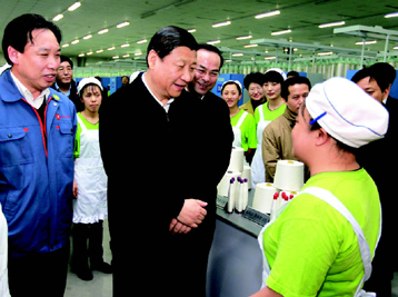 1月20日,中共中央政治局常委、中央書記處書記、國家副主席習近平在吉林省各級有關領導陪同下,來到吉林化纖集團公司進行調研。