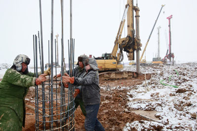 2月19日,阜康市阜西工業(yè)園內(nèi)的中泰化學(xué)工業(yè)園里一片繁忙景象。200多名工人冒著寒風(fēng)和飛舞的雪花正在進(jìn)行廠房的樁基建設(shè)。 中泰化學(xué)(002092)是全國(guó)大型氯堿化工企業(yè)之一,主營(yíng)聚氯乙烯樹脂(PVC)、離子膜燒堿、納米PVC等氯堿化工產(chǎn)品,目前公司生產(chǎn)能力為年產(chǎn)46萬噸聚氯乙烯樹脂、35萬噸離子膜燒堿。