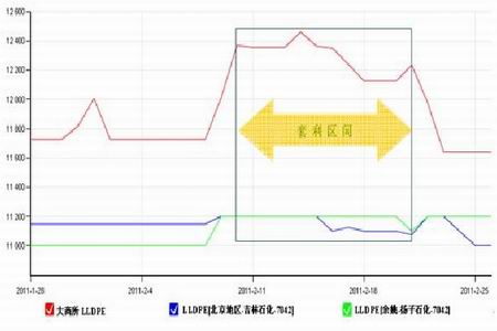 期貨價格的高位運行的同時,現貨價格并未有明顯起色,期現價差拉大,出現期現套利窗口,這一窗口期維持了整個2 月中旬的市場。大商所LLDPE 主力1105 合約與北京地區吉林石化產7042 型號的LLDPE 之間最大價差一度達到1300 元/噸,如果按照每噸400 元的期現套利成本計算,尚有900 元/噸的盈利。這一套利盈利的機會引發大量套利盤的涌入,多頭難以消化如此大量的套利盤的拋壓,期價高位承壓再無力上行,22 日的急速下跌之后,套利窗口完全關閉。從資金流向來看,套利盤基本沒有新單入場,短線炒作的空頭投機資金已呈現陸續撤離跡象,而多頭主力嘗試性的入場抄底,市場的拋壓明顯得以緩解。因此,套利窗口的關閉意味著市場已經有企穩的基礎。