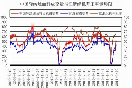 圖十一:中國輕紡城面料成交量和江浙織機開機率走勢圖