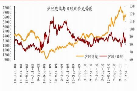 圖6:滬膠連續與日膠連續比價走勢圖