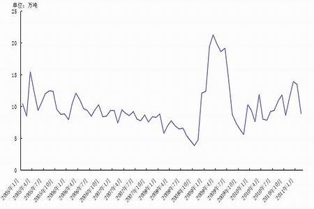 2011 年3 月,中國電石價格穩步回落。上月末月初,河北降雪,導致運輸不暢,華北電石價格上漲,但進入3 月份,氣溫轉暖,電石集中到貨,造成河北及山東地區押車,市場價格也隨之下調。價格下調后,陜西地區部分小電石企業迫于成本壓力,已經停止生產。