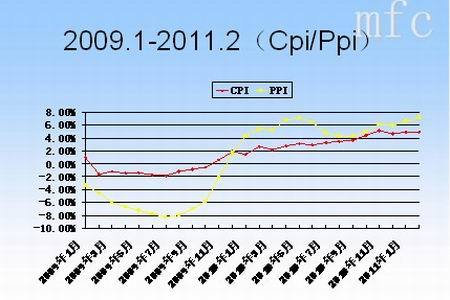 物價持續上升預期依然存在,首先各國為挽救經濟,爭相使用寬松貨幣政策,這將是通貨膨脹長期存在的根源。其次,人民幣升值加速了人民幣資產的吸引力,大量熱錢涌入,迫使貨幣投放增加,形成通脹和人民幣升值的相互作用循環。第三、CPI,PPI持續穩定的走高,持續一年多的時間,并且還有繼續升高的趨勢,大宗商品價格的上漲還要繼續傳導到終端。但是,去年10月加息開始,中國貨幣政策轉向,真正作用到市場,需要6個多月的時間,預期兩個指數回落也要等到二季度末,加息的作用會陸續顯現。