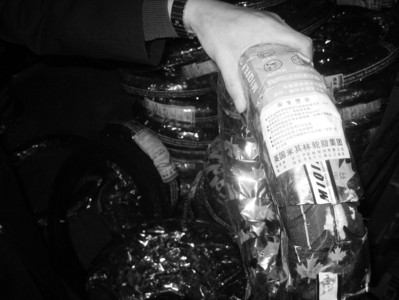 執(zhí)法人員查獲的冒牌米其林輪胎。記者 高世江 攝