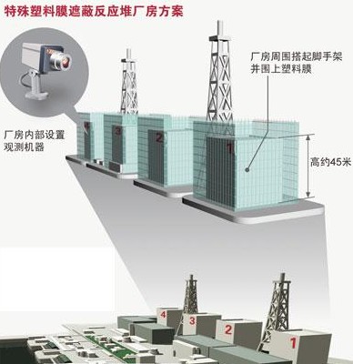 方案稱,如果遮蔽住反應堆和核廢料池溫度不穩定的廠房,有望達到抑制放射性物質擴散的效果。