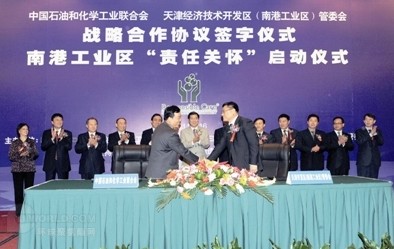 5月16日,中國石油和化學工業聯合會與天津經濟技術開發區(南港工業區)戰略合作協議簽字儀式在天津舉行,南港工業區責任關懷啟動大會同日舉行。石化聯合會常務副會長李壽生出席簽字儀式時表示,此舉標志著石化聯合會與天津開發區的合作進入了新的階段,南港工業區開展責任關懷區域示范,對探索工業園區推進責任關懷具有重要意義。