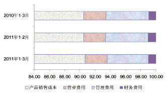 1~3月紡機行業各項費用占總費用的比重圖示