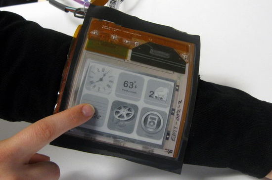 在5月10日的溫哥華“人機(jī)互動(dòng)”國(guó)際前沿會(huì)議上,人類媒介實(shí)驗(yàn)室主任羅埃爾·沃特加爾演示了紙手機(jī)技術(shù)的平臺(tái)原型—袖帶式紙電腦(Snaplet)。