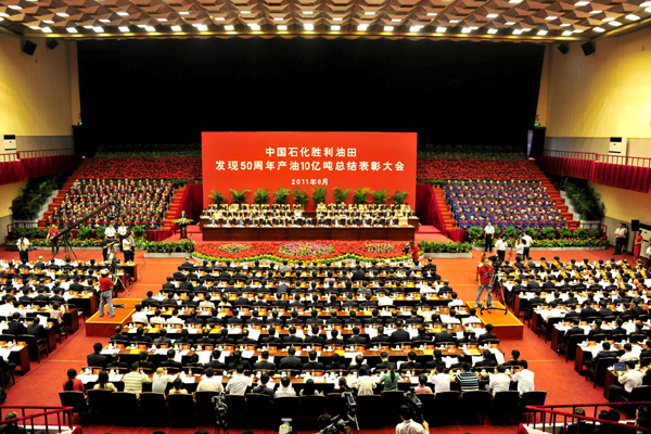 6月10日上午,中國石化勝利油田發現50周年 產油十億噸總結表彰大會在東營勝利油田體育館隆重舉行。