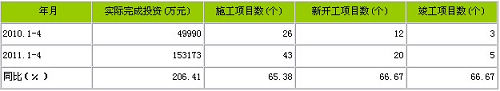 據國家統計局公布的數據,2011年1-4月份錦綸行業實際完成投資額15.32億元,同比增加206.41%;當年以來到目前為止施工項目總數為43個,同比增加65.38%;其中新開工項目數20個,同比增加66.67%;截至4月底為止,已實現竣工項目數5個,同比增加66.67%,占施工項目總數的11.63%,表明該行業投資項目進展較好。