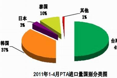 圖為2011年1-4月PTA進口量國別分類圖。(圖片來源:海關總署)