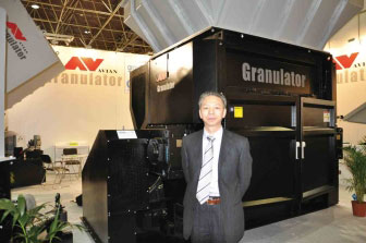 埃維恩(上海)機械有限公司在K2010展出多臺升級版新產品,并特別展出一臺薄膜回收的最大設備,每小時回收產量可達5T。公司總經理繆申羚介紹說,該設備主要解決了薄膜回收產量不易提高的問題,展會第二天就被一家韓國客戶預訂。
