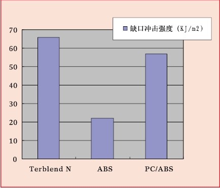 PA/ABS合金產(chǎn)品與其它幾款產(chǎn)品的缺口沖擊強度對比(來源:巴斯夫)。